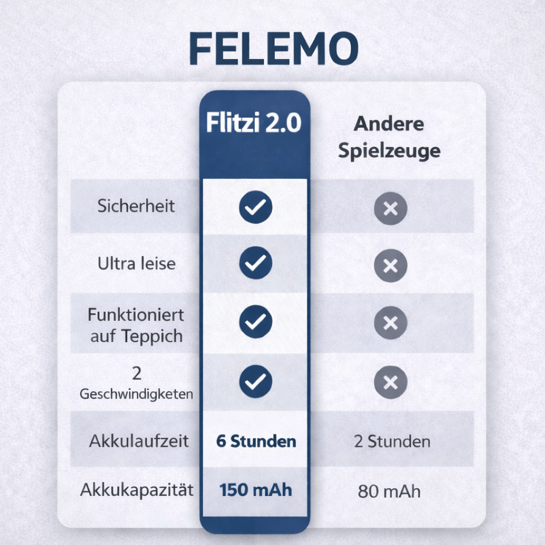 Flitzi 2.0 ist exklusiv bei FELEMO.DE erhältlich. Ähnliche Produkte auf Marktplätzen stammen nicht von uns und entsprechen nicht unseren Qualitätsstandards.