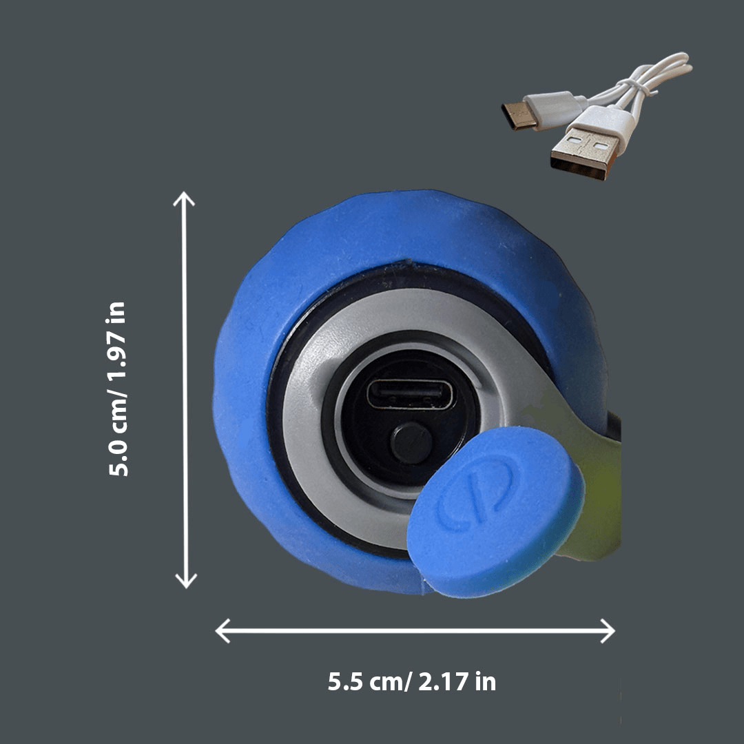 Der Flitzi 2.0 hat einen integrierten USB-C-Anschluss und wird mit einem USB-C-Kabel geliefert. Du musst ihn einfach nur mit einer Steckdose, deinem Handy, PC oder Laptop verbinden. Die Batterie musst du nie austauschen.